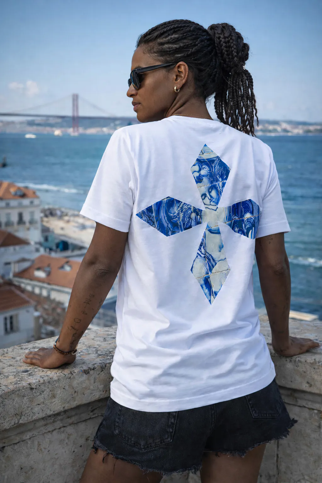 Inspirada nos azulejos que adornam as fachadas de Lisboa, esta t-shirt é mais do que roupa - é uma declaração de identidade. O azul característico dos azulejos portugueses ganha vida neste design que une tradição e modernidade.