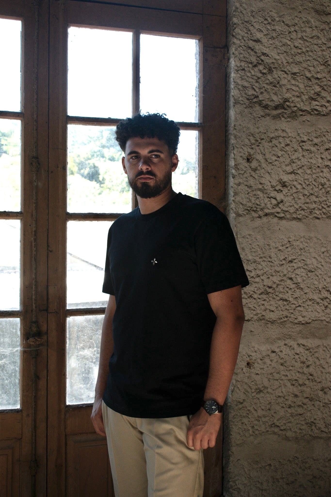 Cada cruz no padrão representa um passo na jornada, um obstáculo superado, uma lição aprendida. Esta t-shirt é para quem entende que o sucesso não é um destino, mas uma jornada de persistência constante.